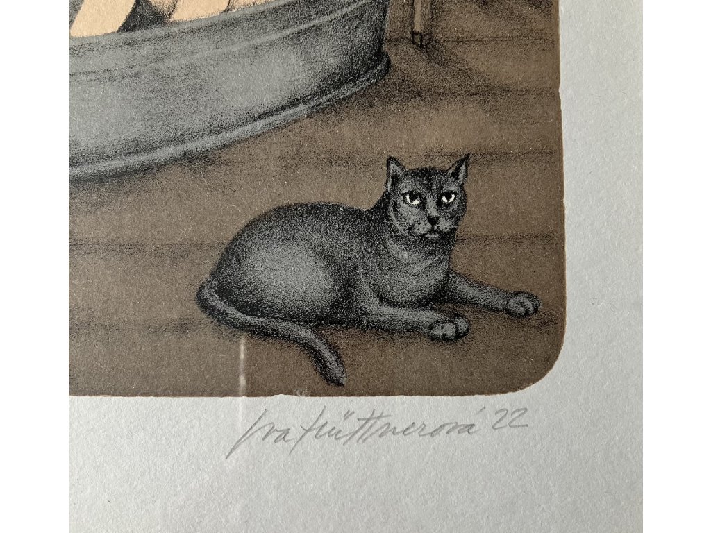 Rámovaná a paspartovaná litografie od Ivy Hüttnerové z roku 20022. Litografie 32x26 cm. Celková velikost s rámem je 56x46 cm.