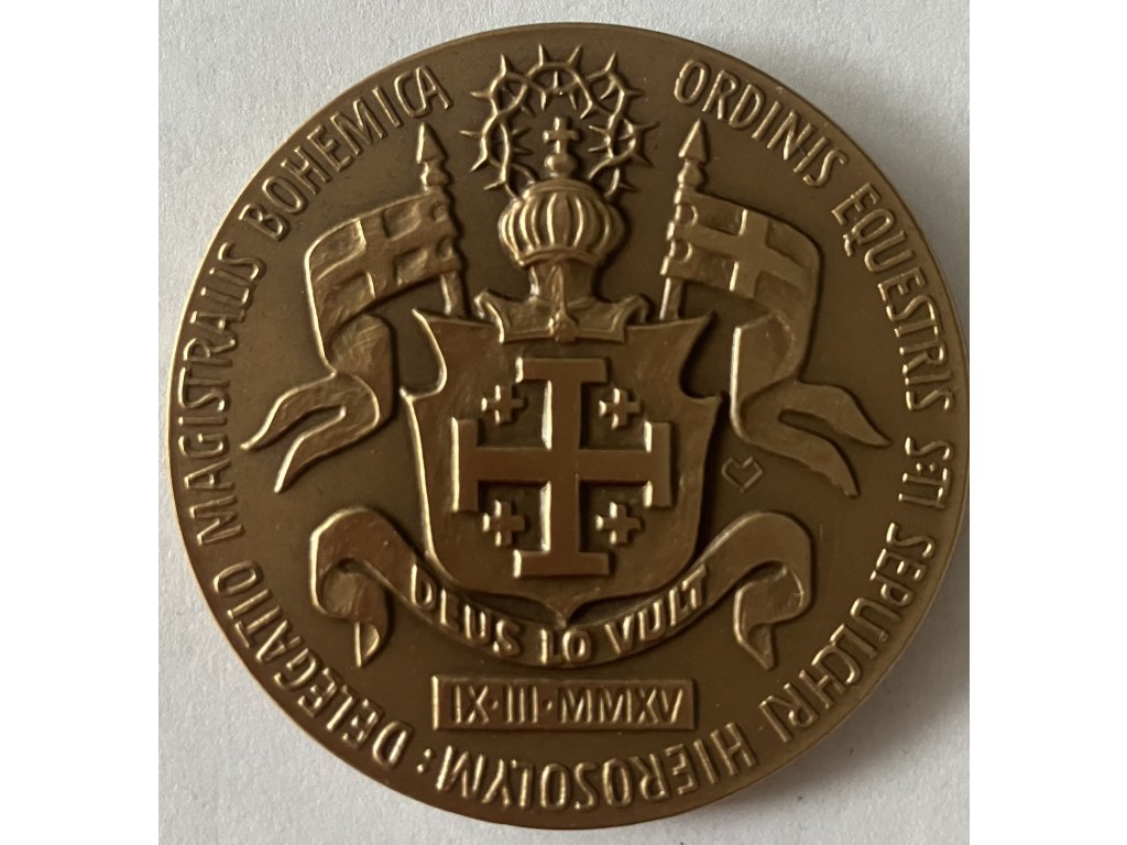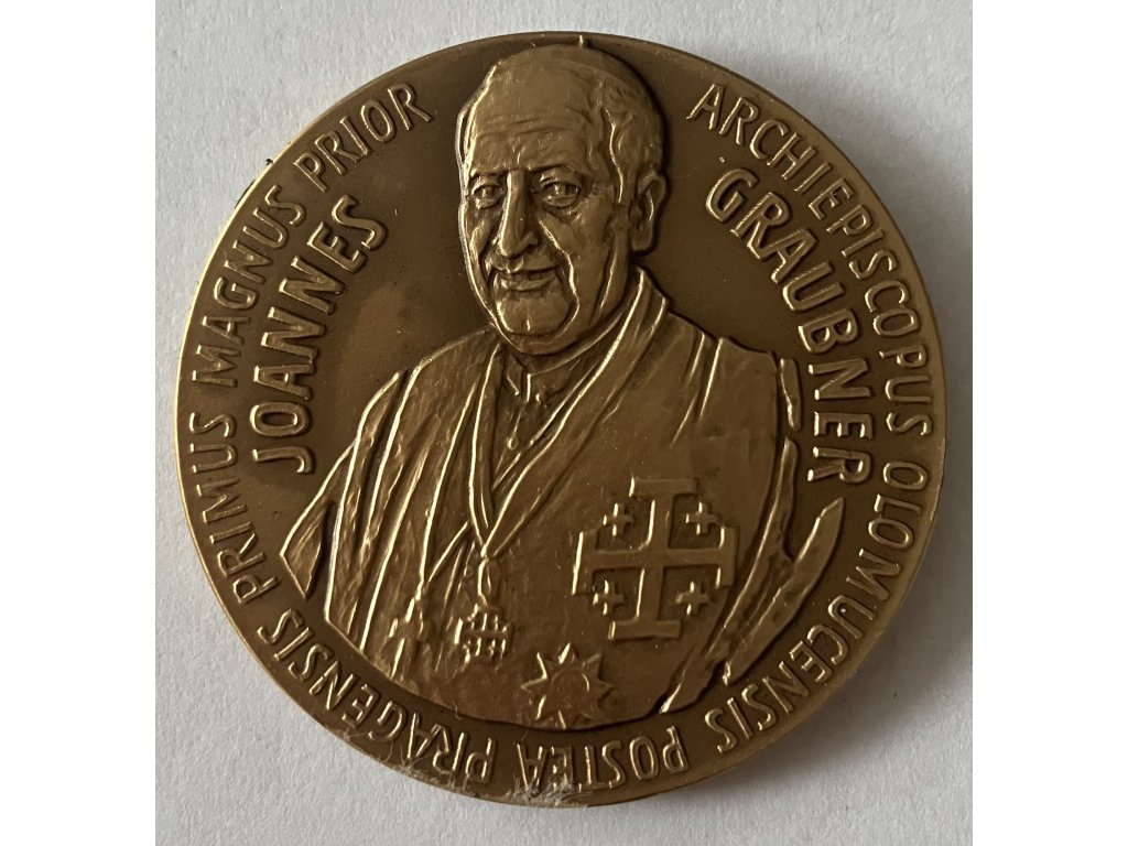 Medaile v tombaku 40 mm. Pražský arcibiskup Jan Graubner. Řád Božího hrobu jeruzalémského. Raženo 120 kusů. Etue.